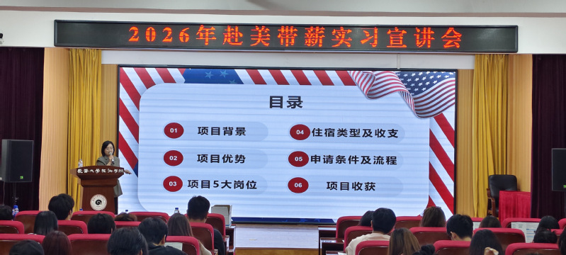 自去年启动以来,赴美带薪实习项目在校内受到广泛关注。此次宣讲会不仅进一步拓展了学生的国际视野、强化了实践应用能力的培养,也深化了我校国际化办学内涵。在学校的大力支持下,更多学子将藉此走向更广阔的世界舞台,开启精彩的异国学习与实习之旅。