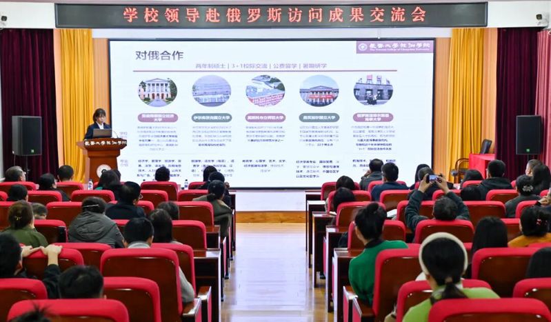 程越在报告中系统回顾了学校在对俄国际合作领域的历史积淀与显著成效,深刻阐释了学校长期以来坚持“引进来”与“走出去”相结合的国际化发展战略。她重点介绍了此次应俄罗斯圣彼得堡国立经济大学邀请成功出访的丰硕成果,指出我校作为唯一受邀的民办院校参加国外顶尖高校校庆活动,实现了国际声誉与品牌形象的“破圈”式提升,也体现了办学特色与核心竞争力的国际认可,为深化国际合作与校际交流提供了重要契机。通过实地访问,代表团深切感受到圣彼得堡深厚的历史文化底蕴与开放友好的学术氛围,对圣彼得堡国立经济大学先进的育人理念及对学生发展的高度重视留下深刻印象,为两校未来合作奠定了坚实基础。