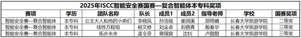 2025年ISCC智能安全赛—复合智能体赛道获国家级二等奖1项、国家三等奖2项 :