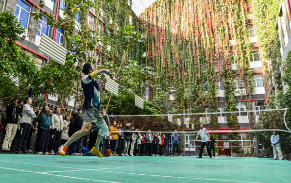 决赛阶段的比拼紧张刺激、扣人心弦。赛场上,他们灵活运用高远球、扣杀、劈吊、网前小球等各种技术,将智慧、力量与技巧完美结合。洁白的羽毛球在空中划出一道道凌厉而优美的弧线,每一次势均力敌的对抗,每一次惊险的扑救,每一次默契的配合,都引得场边观战的师生阵阵喝彩。赛场不仅是竞技的擂台,更是情感交流的舞台,各基层分工会的啦啦队热情助威,“加油”、“好球”的呐喊声此起彼伏,充分展现了长旅大家庭的团结、和谐与蓬勃朝气。
