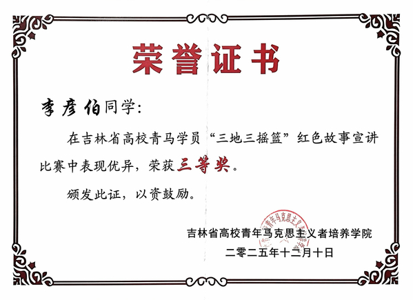 近日,由吉林省委教育工委、吉林省高校青年马克思主义者培养学院主办,长春中医药大学承办的吉林省高校青马学员“三地三摇篮”红色故事宣讲比赛决赛圆满落幕。本次比赛于今年11月正式启动,面向全省高校青马学员征集宣讲作品。初赛共收到来自55所高校的109件视频作品,经评审,20件优秀作品晋级决赛。
