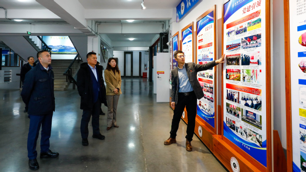 刘强一行先后参观了学校东北抗联主题街区、艺术学院多功能展厅、荣誉展示墙、学习筑梦园及办学成果展,随后在教学楼三楼会议室召开国际交流合作座谈会。