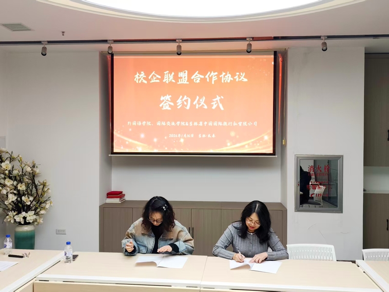 为进一步落实国家产教融合政策,拓宽毕业生实习就业渠道,全面贯彻学校实习就业工作整体部署,1月16日,外国语学院、国际交流学院院长彭又新带领学院领导班子赴吉林省恒曜旅游文化产业集团开展访企拓岗,并成功签订校企合作协议。