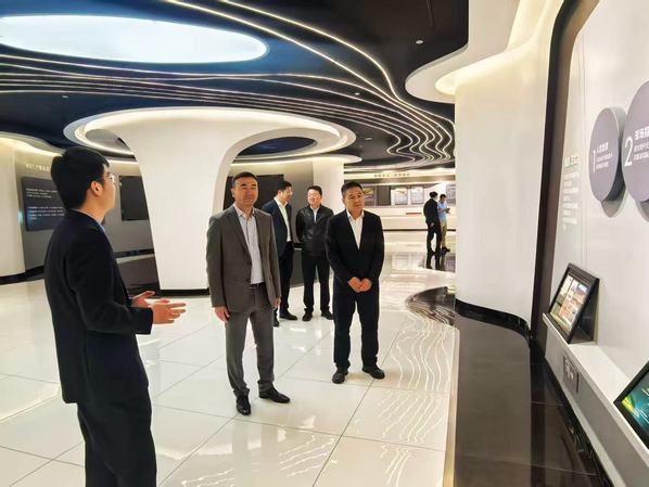 在中车长江运输设备集团有限公司副总经理杨景林、武汉中车智能运输系统有限公司董事长王海腾、武汉中车智能运输系统有限公司副总经理刘旋的陪同下,张海涛一行来到武汉中车产品展厅,通过实地观摩与细致讲解,系统了解了企业在智能空轨集疏运系统研发、生产、建设及运维服务等方面的先进经验与产业成就。