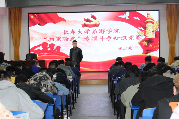 为进一步推动学校扫黑除恶专项斗争工作的深入开展,提高同学们对扫黑除恶专项斗争工作的知晓率和参与度,4月12日下午,保卫处联合学生工作处,在教学楼筑梦报告厅举办了“扫黑除恶”专项斗争知识竞赛,来自各学院200余名学生代表参加了活动。