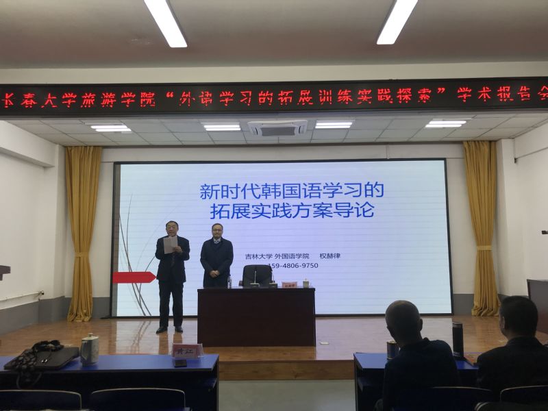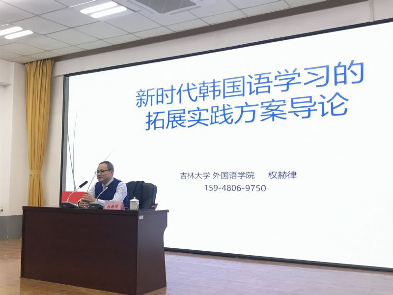 4月11日下午,吉林大学博士生导师权赫律教授受邀在我校筑梦报告厅开展了题为“外语学习的拓展训练实践探索”的学术讲座。讲座由外国语学院院长黄江主持,外国语学院及我校其他专业 200余名师生到场聆听。
