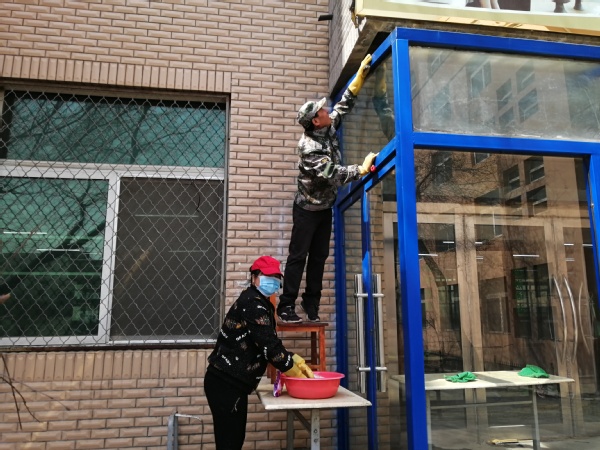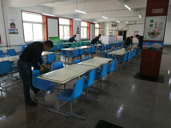 动员会结束后,在校区领导干部的带领下,大家按着各自的分工,投入了紧张的劳动中,将校园卫生、食堂卫生、寝室、教室做了全面清理。干部群众齐上阵,不怕脏,不怕累,争分夺秒加油干,有的同志累的满头大汗,衣服都湿透了顾不得换,有的同志忙碌一天顾不上喝口水,整个校区上上下下呈现一派繁忙有序的劳动景象。经过两整天的大会战,整个校园变得整洁、明亮、温馨、舒适,焕然一新。