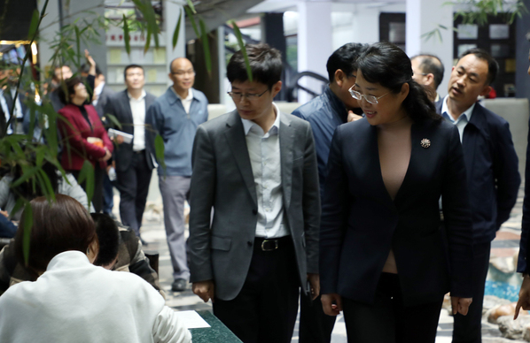 魏秀云一行首先在教学楼二楼中厅参观了学校“新时代 新长旅”办学成果展,党委组织部部长许乔木从学校发展历程、党建引领、立德树人、内涵发展、国际交流、以人为本等九个方面对展板内容进行了讲解;在校领导的陪同下,魏秀云一行在筑梦报告厅观看了学校宣传片和2018年度活动集锦片,并实地踏查了学习筑梦园、室内羽毛球场、创客中心,感受了我校独特的校园文化和人文景观。