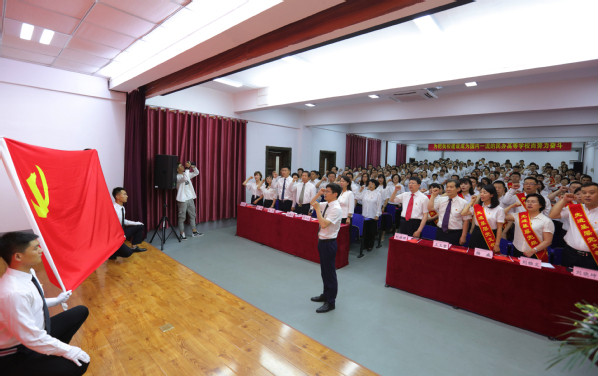 7月1日下午,学校在教学楼筑梦报告厅隆重召开庆祝建党98周年暨2017-2019年度“创先争优”表彰大会,回顾党的98周年光辉历程,总结学校两年来党建工作新进展、新成绩,集中表彰一批先进基层党组织和优秀个人,激励广大党员坚守初心、牢记使命,为实现学校各项事业快速发展的任务目标而奋发进取。