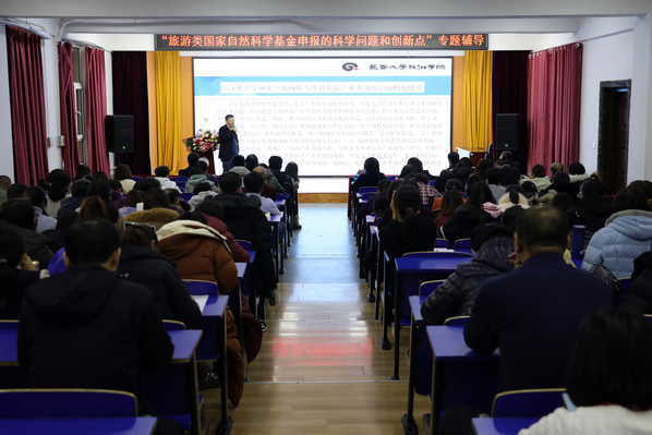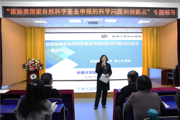2020年国家自然科学基金申报工作即将开始,为使我校教师了解关于国家自然科学基金申报流程及评审要求,激发申报热情,提升申报成功率。11月25日在教学楼筑梦报告厅,东北亚休闲经济研究中心与科研处联合举办了“旅游类国家自然科学基金申报的科学问题和创新点”专题辅导。东北亚休闲经济研究中心主任、中国科学院东北地理与农业生态研究所研究员、博士生导师佟连军为教师做专题辅导。学校副校长贺柏平,各相关学院院长、副院长及相关教师参加专题辅导。专题辅导由科研处处长陈湘芹主持。