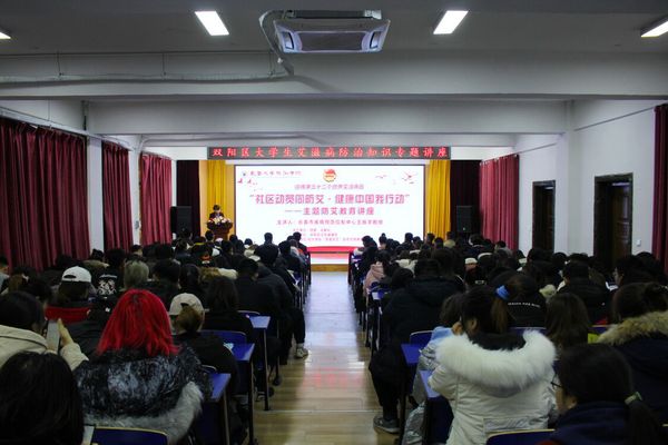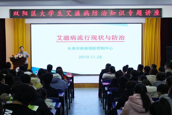 为了贯彻落实《吉林省防治艾滋病工作委员会办公室关于做好2019年“世界艾滋病日”主题活动的通知》要求,提高大学生知艾防艾能力。11月28日,校团委、后勤处携手长春市疾病预防控制中心、双阳区卫生健康局在教学楼筑梦报告厅联合举办“社区动员同防艾·健康中国我行动”主题防艾宣传教育讲座。