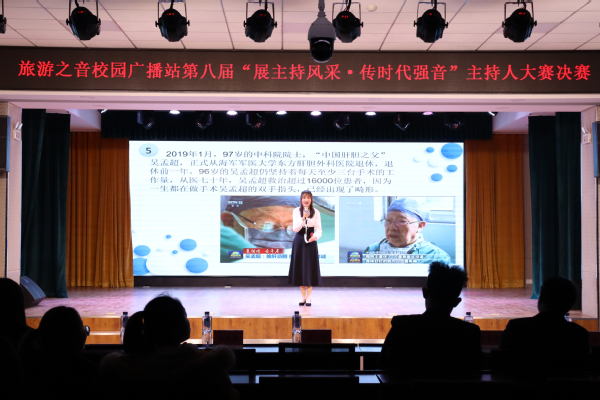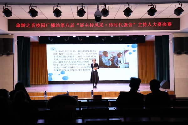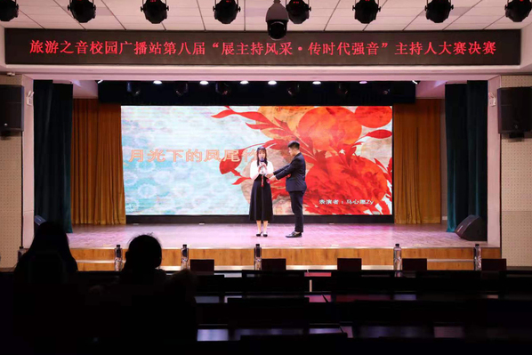 为活跃校园文化氛围,发掘和培养学校热爱播音与主持艺术的人才。12月4日晚,旅游之音校园广播站在大学生活动中心成功举办“展主持风采·传时代强音”第八届主持人大赛决赛。校团委书记贾烊、副书记张帆、教师高嘉鸿以及学校各级学团骨干参加了此次活动。