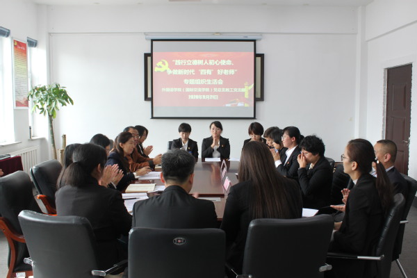 纪委书记、党委副书记、副校长程越在外国语学院(国际交流学院)教工党支部专题组织生活会上提出了四点要求:一是要坚定理想信念,牢记使命,潜心育人,以党员教师的责任与担当为学生扣好“人生第一粒扣子”;二是要提升道德追求,坚守精神家园,用务实的言行和高尚的情操为学生树立优秀的示范榜样;三是要站在知识发展前沿,刻苦钻研,严谨笃学,不断充实、拓展、提升自己,以锲而不舍的学习研究为学生提供鲜活的知识清泉;四是要拥有仁爱之心,以爱为源,以心育心,尊重、理解和宽容学生,用情感、欣赏和信任为学生搭建平稳的成长成才之路。
