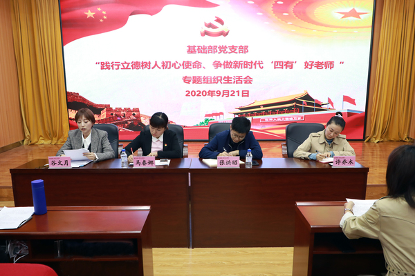 党委书记张洪昭在基础课党支部和体育党支部专题组织生活会上强调,我们全体党员教师要按照“四有”好老师的标准深刻检视自身并不断为之努力拼搏奋斗,要始终坚守中国特色社会主义大学教师本份,牢记立德树人育人使命,坚定“为党育人、为国育才”的神圣职责;要以德立教、以德立身、以德立业,做一名拥有高尚道德情操的高等教育工作者;要不断钻研各自学科领域前沿,不断拓宽知识面、提升学历层次和教育教学水平,努力成长为学识扎实、行业领军的中坚骨干;要有仁爱之心,要爱生如子,关心呵护每一名学生的成长进步,努力成为大学生成长道路上的贴心人、引路人。对于支部建设工作他强调,一是要继续加强党内政治生活规范化建设,强化党支部的政治功能,增强党员身份意识,让党支部始终成为凝聚、影响和带动全体党员的党员之家;二是全身心做好本职工作,党员教师要努力在教学科研育人工作上下功夫,力争每一项工作都做到优秀极致,我们的党员先锋模范作用也就充分发挥出来了;三是把课程思政作为重要的工作创新扎实推进,充分论证挖掘每门课程的思政元素,并将其有效融入课堂教学,不断提升每门课程的育人功能。