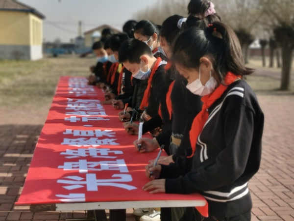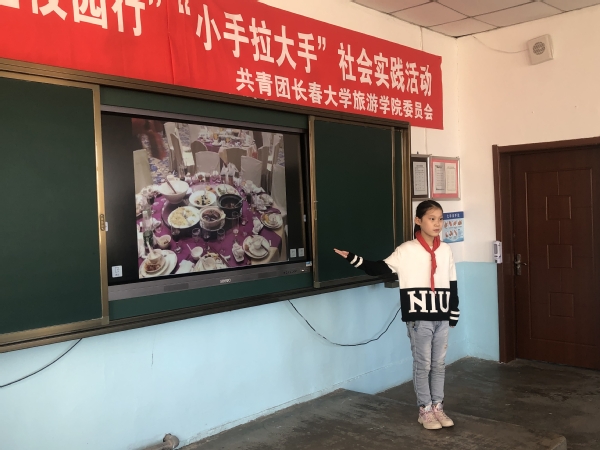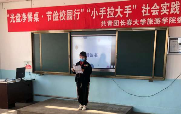 在四台子小学校领导的高度重视和大队辅导员的精心组织下,通过图片展示、儿歌表演、诗朗诵、条幅签名、集体倡议等方式深入解读习近平总书记关于坚决制止餐饮浪费行为,切实培养节约习惯的重要讲话精神,号召小学生们争做“浪费可耻、节约为荣”的践行者和宣传者。四台子小学大队辅导员宋逸云表示:“长春大学旅游学院团委举办的这次系列主题活动,为我们在校园内营造‘浪费可耻、节约为荣’的氛围带来了活动契机和工作思路,我们充分结合学校实际和学生特点,通过丰富的活动内容和多种形式,进一步深化活动主题,提高活动覆盖面,积极营造良好的校园文化氛围,本次活动大幅度推进了两校共青团与少先队工作的联动呼应,未来我们将继续深入探索两校共建模式机制,努力搭建育人服务平台,在共青团和少先队工作上争创新基点、开创新局面。”