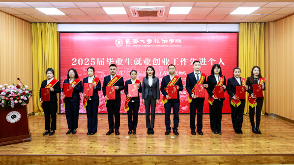 党委副书记、纪委书记程越宣读了《关于表彰2025届毕业生就业创业工作先进集体和先进个人的决定》;学校领导为获奖的先进集体和先进个人颁奖。