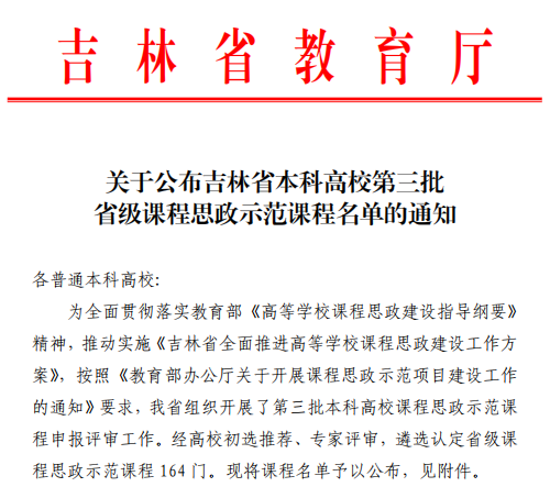 吉林省本科高校第三批课程思政示范课程名单