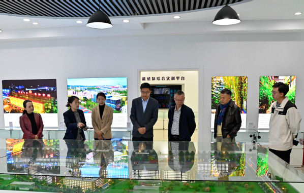 刘旋一行先后参观了学校荣誉展示墙、学习筑梦园、人工智能实训室及艺术展厅,随后在教学楼三楼会议室召开座谈会。