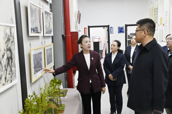 调研伊始,苑广鸿一行先后参观了艺术学院多功能展厅、东北抗联主题街区、荣誉展示墙和办学成果展,详细了解学校近年来学校在党建思政、人才培养、特色办学、社会服务等领域的突出成绩。