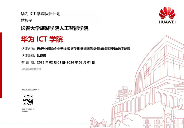 长春大学旅游学院人工智能学院认证级华为ICT学院证书