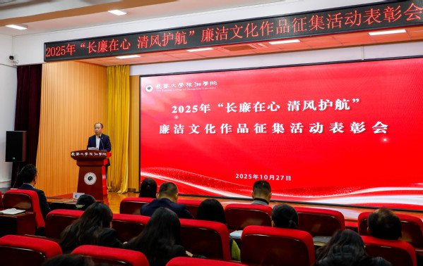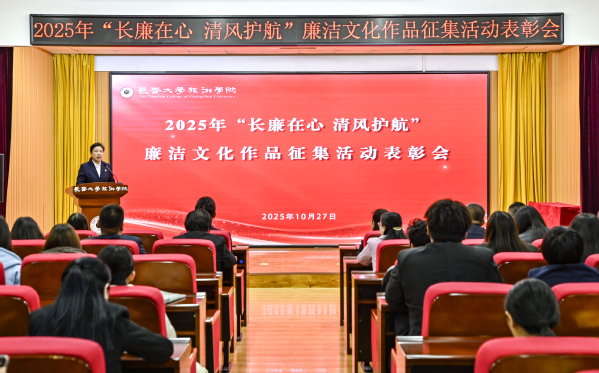 程越为表彰会致辞。她表示,今年是学校的“品牌深耕”年,开展作品征集活动不仅是对廉洁精神的弘扬与传承,更是学校深入学习贯彻习近平新时代中国特色社会主义思想,全面贯彻党的二十大和二十届历次全会精神,锲而不舍落实中央八项规定精神的一项重要工作举措。要以此次表彰活动为契机,进一步加强广大师生对廉洁文化的学习和宣传,传递廉洁“正能量”,文化润其内,养德固其本,将创作者对廉洁文化的深刻理解通过作品展现出来,以独特的视角、丰富的形式让廉洁理念深入人心。