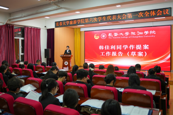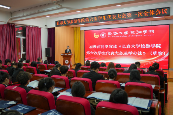 崔雅茹同学宣读《长春大学旅游学院第六次学生代表大会选举办法》(草案)