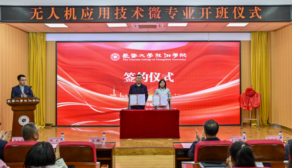仪式上,高峰与张家成分别代表学校与企业签署合作协议、为“无人机应用技术微专业校企联合实践基地”揭牌、向龙航无人机导师团队颁发聘书。此举标志着校企合作迈入新阶段,双方将携手推进技术研发与人才培养协同发展。