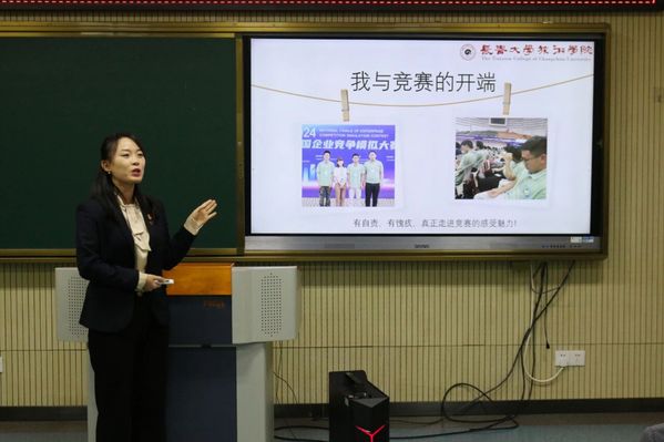 本次活动以“以赛促学・助力成长”为核心主题,特邀商学院金融学专业副教授田春雨担任分享嘉宾。田春雨曾获得2025年全国高校商业精英挑战赛创新创业竞赛国家一等奖、全国企业竞争模拟大赛国家二等奖,团队近年成果显著。分享会由副院长于赫主持,各专业师生代表齐聚一堂。