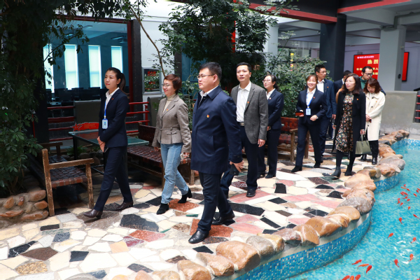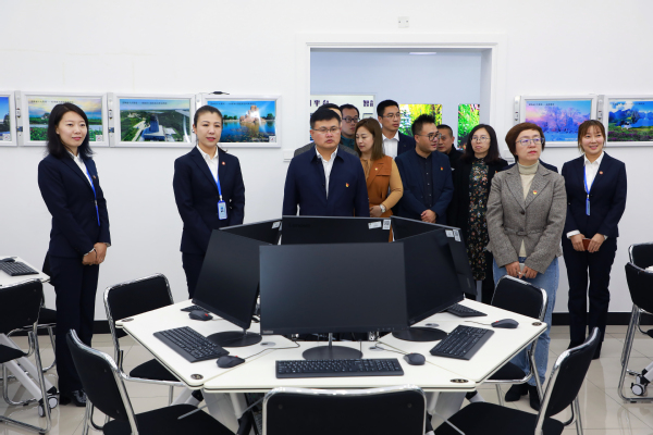 长春工业大学人文信息学院领导一行参观了学校独具特色的天井景观带、人工智能实训室、多功能智慧教室,观看了“新时代 新长旅”办学成果展和学校宣传片。