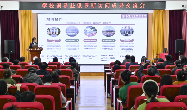面向未来,程越就学校国际化工作的提质增效提出具体建议与展望。她强调,要持续拓展与俄罗斯等“一带一路”沿线国家高水平大学的合作网络。在人才培养方面,积极拓展学生海外留学、带薪实习、短期研学等多元交流模式;在师资建设方面,要进一步加大教师赴境外高校攻读博士学位的推荐力度,全面提升师资队伍的国际化水平和学历层次。她建议,国际交流处则需与各学院建立常态化协同机制,加强现有国际项目的宣传推广,让更多师生在学校国际化进程中切实受益。