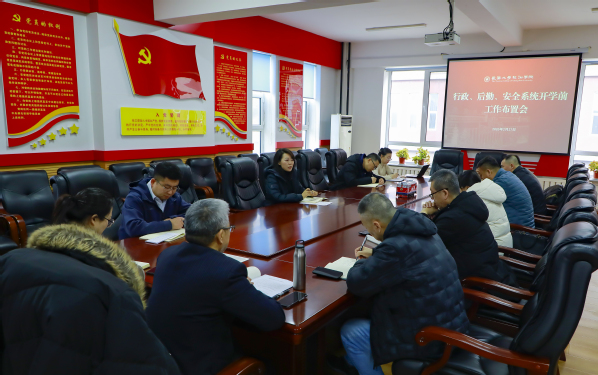 2月27日上午,学校在行政楼二楼会议室召开行政、后勤、安全系统开学前工作布置会,学校办公室、安全处、工会、校友办、妇委会、审计处、政策法规办公室、后勤处、基建处、后勤服务中心、图书馆副处及以上干部参加会议。会议由副校长杨威主持。