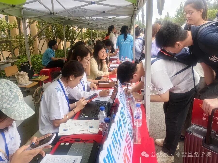 在迎新现场,学院特别安排了全天候专业老师为新生及家长提供一对一的专业讲解。从冰雪运动装备设计到跨境电商实训,老师们耐心解答疑问,帮助新生快速了解专业特色与未来发展方向,为即将开启的大学学习奠定坚实基础。