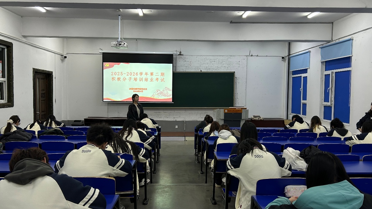 为深入学习贯彻习近平新时代中国特色社会主义思想,全面落实新时代党的建设总要求,严把党员发展“入口关”,持续夯实青年学子思想根基,4月8日,冰雪丝路学院2025-2026学年第二学期入党积极分子培训班圆满完成全部教学任务,顺利结业。