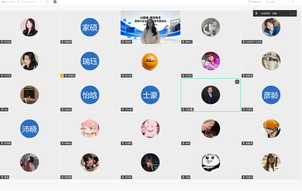 为紧跟行业发展趋势,助力2024级服装专业学生掌握前沿AI技术,提升专业学习与未来就业核心竞争力,针对2024级服装专业学生召开“AI赋能•增效降本”服装行业全链路应用专题培训线上动员会议。本次会议由2024级学业导师邢瑞珏主持,专业带头人王健、教研室主任王贝妮以及2024级服装专业学生共同参会。