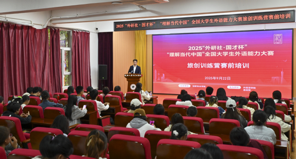 为助力学生在2025“外研社·国才杯”“理解当代中国”全国大学生外语能力大赛中斩获佳绩,9月22日,由创新创业学院主办、外国语学院和基础部联合承办的旅创训练营赛前培训会成功举行。本次培训聚焦大赛规则解读与外语综合应用能力提升,为参赛选手筑牢赛前准备基础,会议由外国语学院副院长许可新主持。