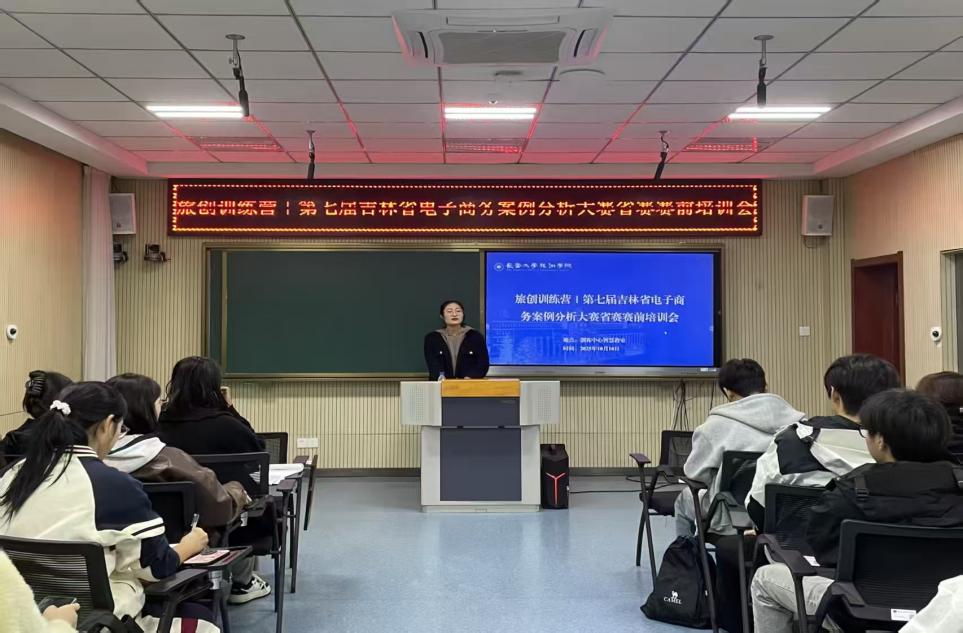 为助力参赛学生在第七届吉林省电子商务案例分析大赛省赛中斩获佳绩,10月10日,由创新创业学院主办、冰雪丝路学院承办的旅创训练营省赛赛前培训会在智慧教室成功举行,本次培训邀请创新创业学院张冰洋老师担任主讲人,会议由冰雪丝路学院宋佳津老师主持,全体参赛同学参会。