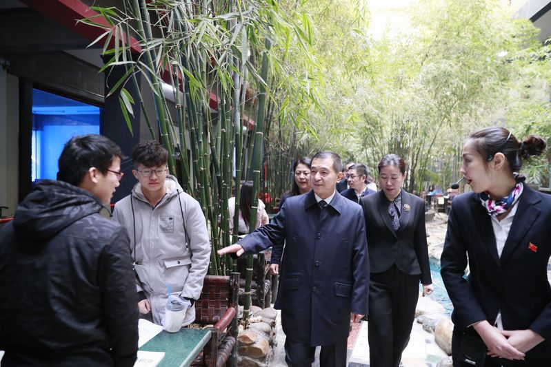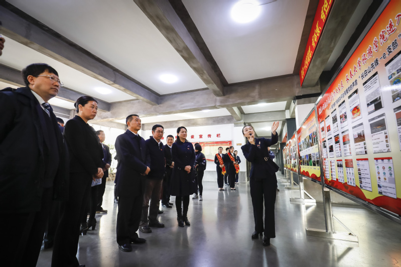 随后,于洪岩副部长一行参加了启动仪式。仪式结束后,在郑晓明副董事长、校领导班子、党委委员的陪同下对我校党建工作进行调研。他们首先参观我校党建工作成果展,展览以图文并茂的形式展示我校党建工作的亮点,党委组织部部长许乔木进行讲解。讲解以党建工作助力民办高校大发展,长春大学旅游学院进入新时代为主题,通过建章立制,规范管理;学习宣传贯彻党的十九大精神;基层党组织认真落实“两学一做”;创先争优争做表率;青年马克思主义培养工程;知党爱党跟党走,入党启蒙教育;校内多个新媒体平台传播党的声音,“长白山先锋e支部”迅速推广应用;大美旅院旧貌换新颜;青春演绎,筑梦启航;校园文化活动异彩纷呈;多家媒体聚焦我校等11个板块全方位展示了学校党建工作成果。讲解结束后于部长一行报以热烈的掌声,高度评价了我校党委真抓实干,积极作为所创造的党建硕果。