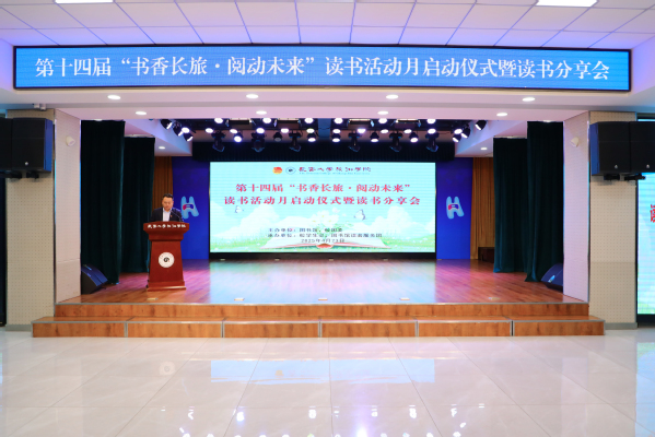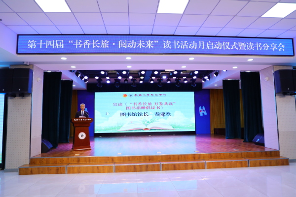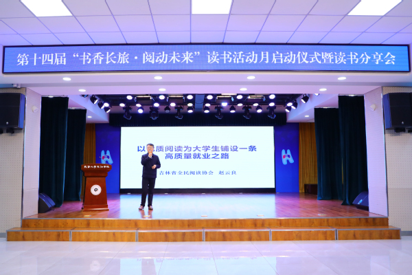 为深入贯彻落实习近平新时代中国特色社会主义思想和党的二十大关于深化全民阅读活动的重要部署及学校“品牌深耕年”工作安排,全面落实立德树人根本任务,学校在第30个“世界读书日”举办第十四届“书香长旅·阅动未来”读书活动月启动仪式暨读书分享会。吉林省全民阅读协会会长赵云良、秘书长王义彪,学校党委副书记高阳,副校长杨威、图书馆、校团委全体教师、各学院团委书记和学生代表共计500余人参加本次活动。会议由校团委书记蒋森主持。