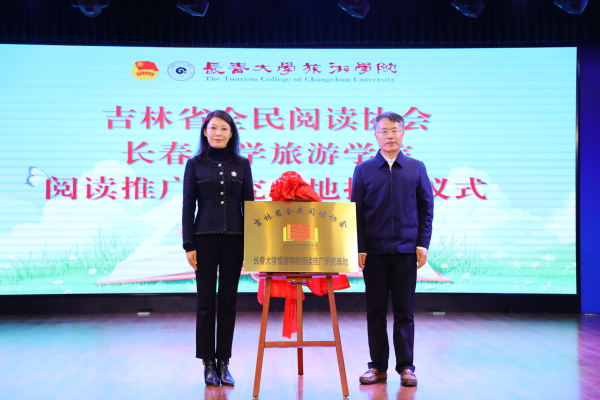 杨威、赵云良共同为“吉林省全民阅读协会长春大学旅游学院阅读推广研究基地”揭牌