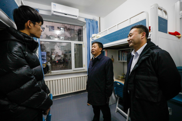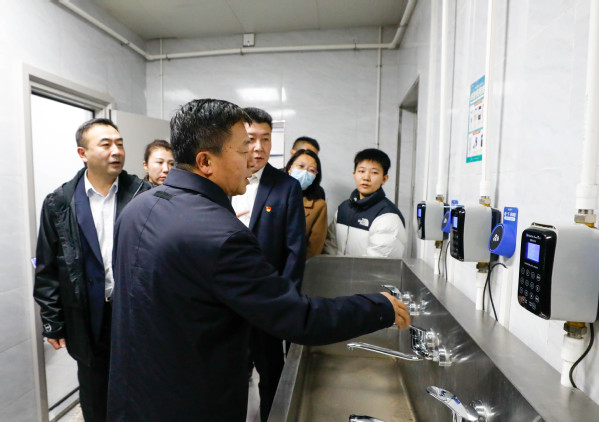 参观学校学生公寓提质升级改造工程:了解智慧热水和空调使用情况,并与学生亲切交谈