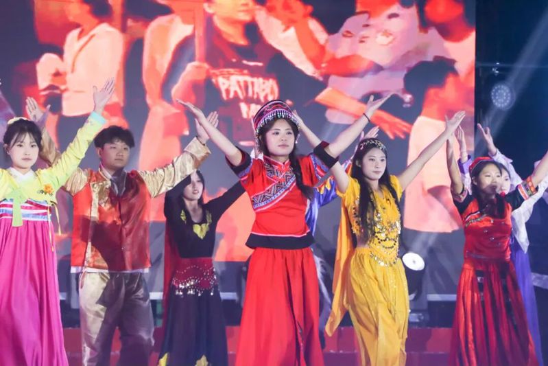 整场晚会以“缘起·相聚长旅”“峥嵘·薪火相继”“启航·共赴山海”三大篇章层层递进,巧妙融合国庆欢腾、中秋团圆、纪念抗战胜利80周年、东北抗联精神传承以及学校发展愿景等多元主题,通过校友荣光回归、跨国温情互动、红色基因艺术演绎等元素,实现思想政治教育与艺术感染力的深度融合,让新生的归属感悄然生根发芽,自豪感随之充盈心怀。