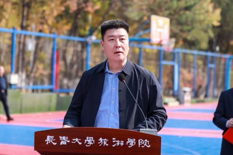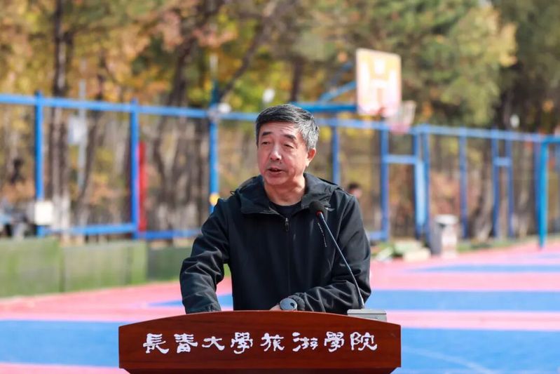 高阳在开幕式上发表讲话。他指出,学校始终将体育工作深度融入“三全育人”“五育并举”综合改革体系,通过优化体育设施、拓展活动平台、创新活动形式,为学生搭建起挥洒汗水、超越自我、凝聚信念的成长舞台。他鼓励同学们在运动中享受乐趣、激发潜能、磨砺品格,将永不言败的体育精神内化为推动自身成长、勇敢追逐梦想的持久动力。他强调,本届体育文化节创新融入冰雪主题项目,是推动冰雪运动进校园、服务冰雪发展战略的生动实践,希望广大师生在参与中感受地域魅力、传承地域文化、爱上冰雪运动,共同绘制“文体融合、冰雪生辉”的校园文化崭新画卷。