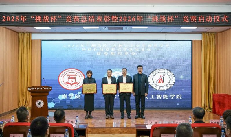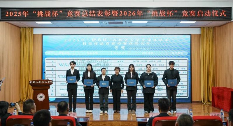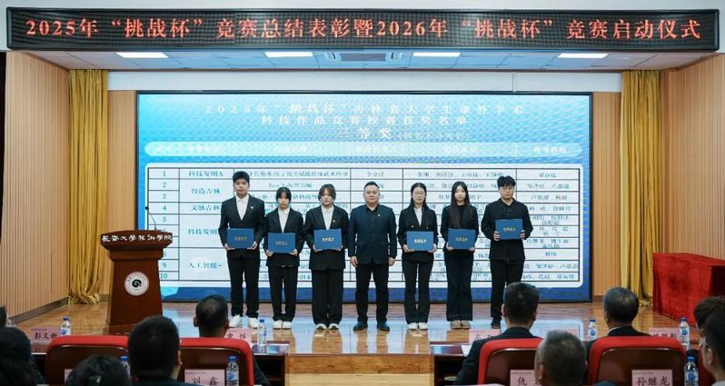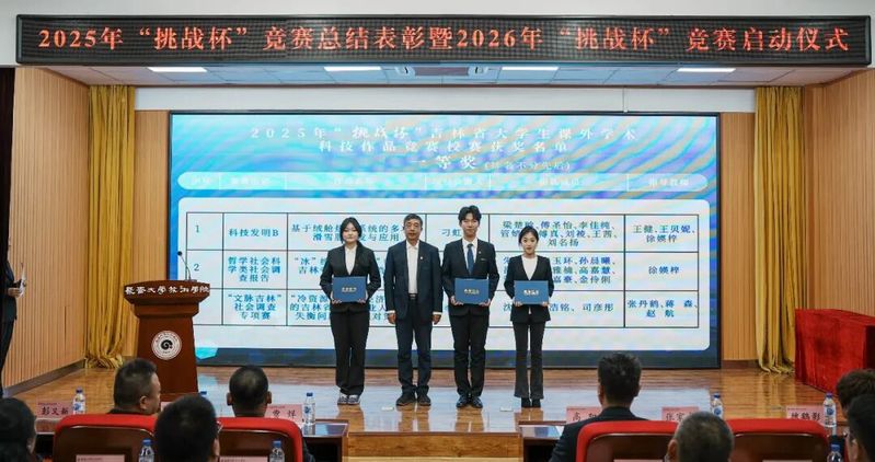大会对2025年“挑战杯”赛事中涌现的优秀团队与个人进行表彰。艺术学院《基于绒舱热流系统的多功能滑雪服研发与应用》等3件作品荣获一等奖,商学院《“吉”不可待,“汽”韵远扬——关于吉林省汽车文化与传播的社会调查研究报告》等10件作品荣获二等奖,人工智能学院《“智”守长枪魂:电子枪头赋能传统武术传承》等10件作品荣获三等奖;王贝妮等35名教师荣获“优秀指导教师”称号;艺术学院等3个学院获评“优秀组织单位”。