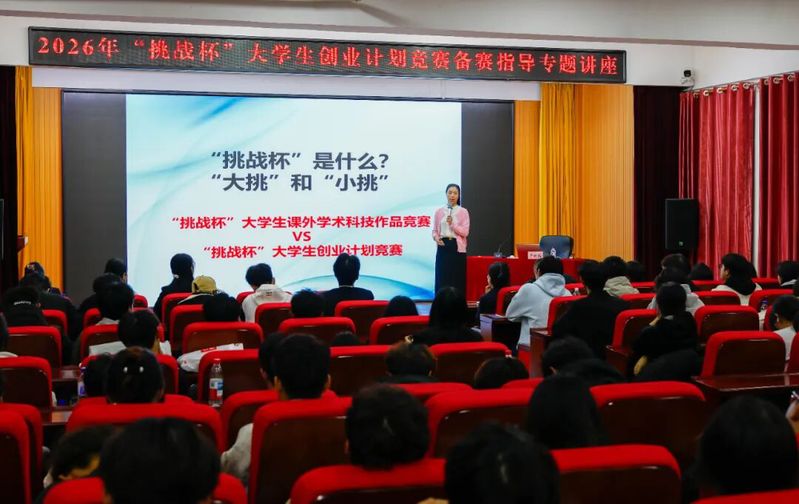 启动仪式结束后,学校特别邀请大学生创新创业教育领域专家李晓程老师,作2026年“挑战杯”大学生创业计划竞赛备赛指导专题讲座。李晓程以《“挑战杯”系列竞赛赛事解读》为主题,围绕“挑战杯”是什么、如何选题、赛事整体要求和学校专业特色融合等多个维度展开系统讲解,既涵盖对赛事政策的整体把握,也包括对参赛要点的精准剖析,更突出学校特色学科交叉与实战应用的结合,为师生备战2026年“挑战杯”竞赛提供了一份清晰的“备赛导航图”。