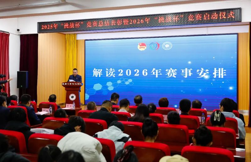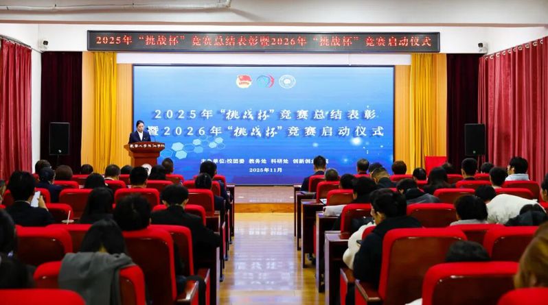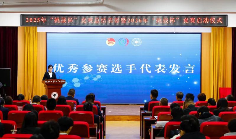1月14日下午,学校2025年“挑战杯”竞赛总结表彰暨2026年“挑战杯”竞赛启动仪式在筑梦报告厅举行。学校党委副书记高阳、副校长贾烊与师生代表共同见证荣耀时刻,开启新一轮创新征程。学校团委副书记黄群主持会议。