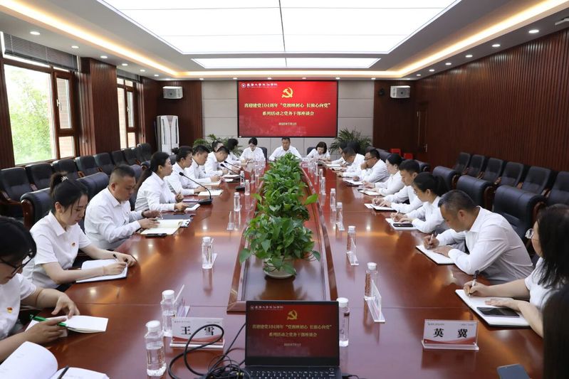 为庆祝中国共产党成立104周年,扎实推进新时代发展党员工作,7月1日上午,学校在教学楼三楼会议室召开党务干部座谈会,党委书记范琳琳、党委副书记高阳出席会议。会议由党委组织部部长张俊梅主持。