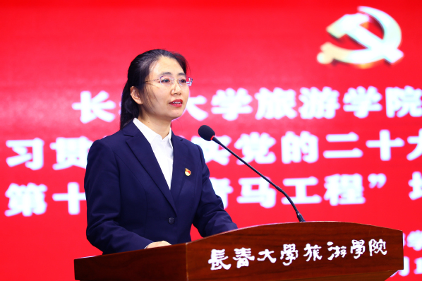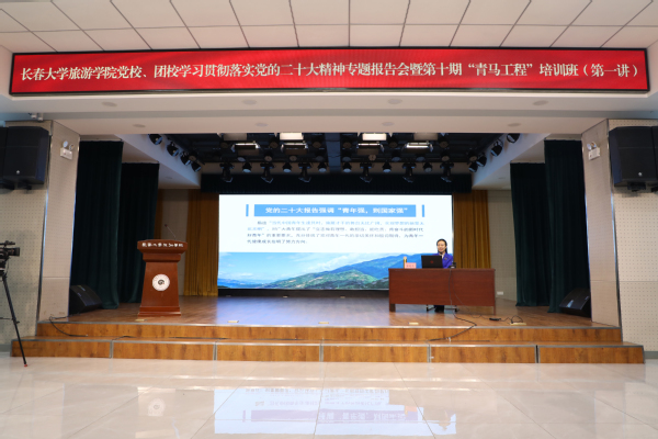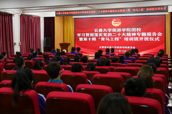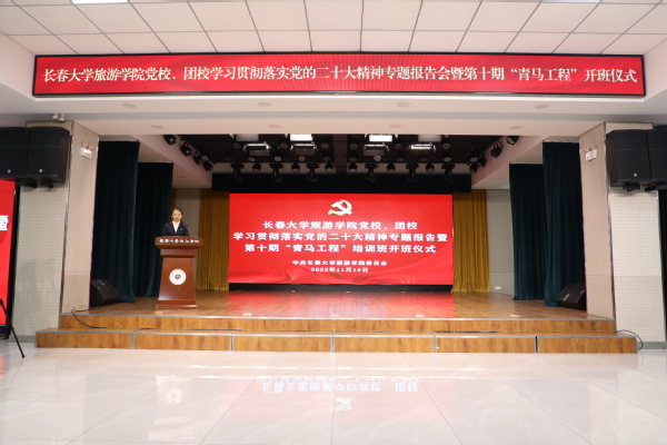 为深入学习宣传贯彻党的二十大精神,推动党的二十大精神在长旅深入基层、深入学生、深入人心,切实把全校广大青年学生的思想和行动统一到党的二十大精神上来。11月18日,学校党校、团校学习贯彻落实党的二十大精神报告会暨第十期“青马工程”培训班开班仪式在大学生活动中心举行。团中央党的二十大讲师团成员、吉林省超凡梦想公益基金会理事长张超凡为学校青年学生宣讲党的二十大精神。学校党委书记(督导专员)范琳琳、党委副书记程越出席活动。相关部门负责人,马克思主义学院院长,各学院党总支书记、团委书记参加活动。学校党校、团校部分学员,第十期“青马工程”培训班学员及各学院主要团学干部近1000人在主会场和7个分会场通过线上线下相结合的方式聆听报告。仪式由党委组织部部长孙野主持。