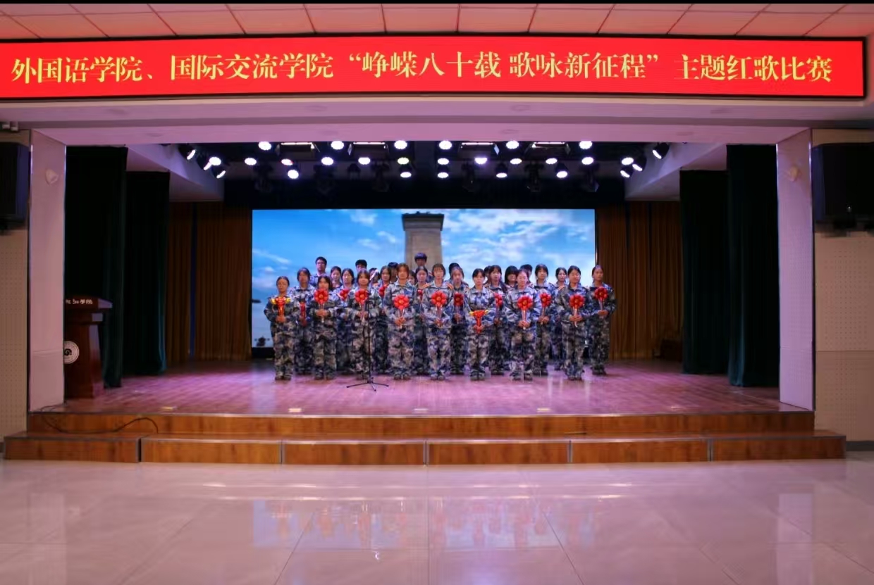 丹桂溢香浸润九月校园,红歌嘹亮点燃奋进豪情。为纪念中国人民抗日战争胜利暨世界反法西斯战争胜利八十周年,传承红色基因、弘扬爱国主义精神,充分展现学院新生的爱国情怀与青春风貌,9月23日,外国语学院、国际交流学院于大学生活动中心举办“峥嵘八十载,歌咏新征程”主题红歌比赛。学院党总支书记孙野、团委书记齐柠宇,辅导员张启明、欧阳梦一、郑雨佳、刘凯、王瑀晰担任评委。