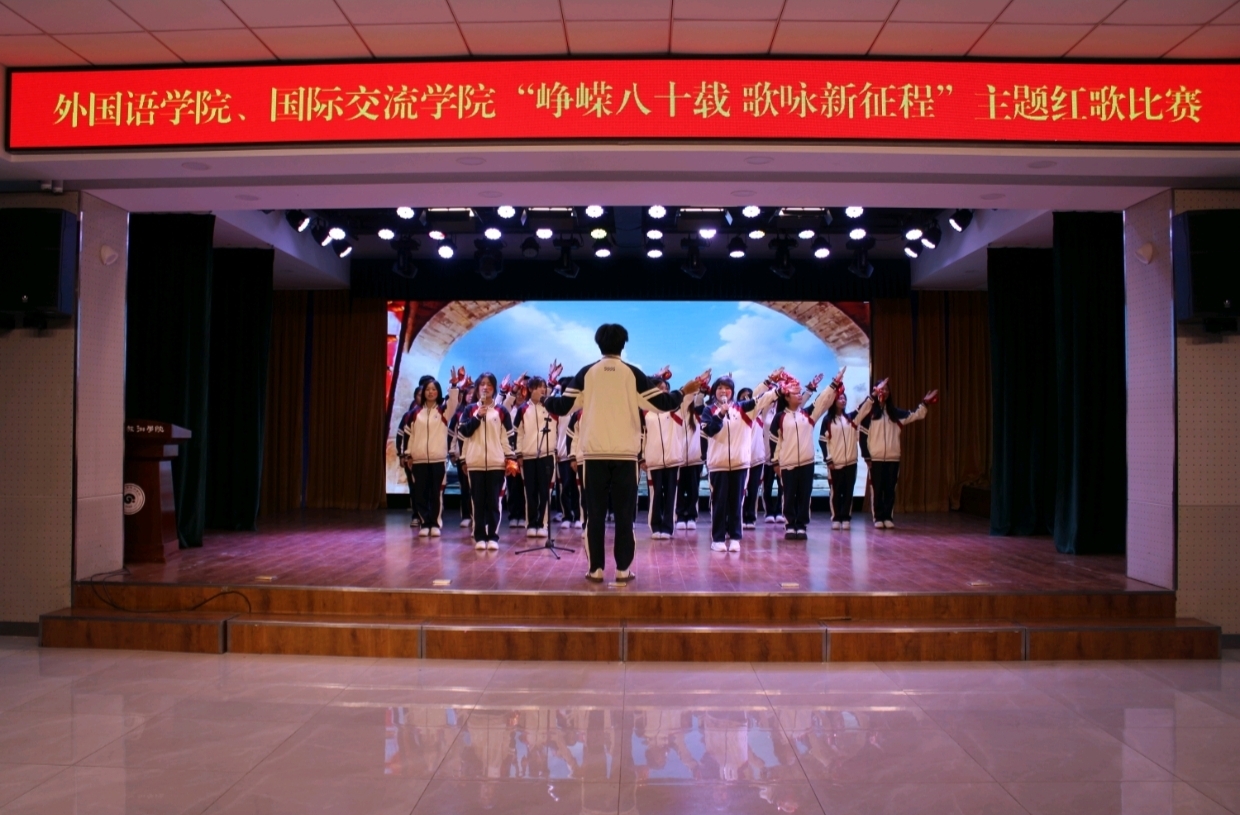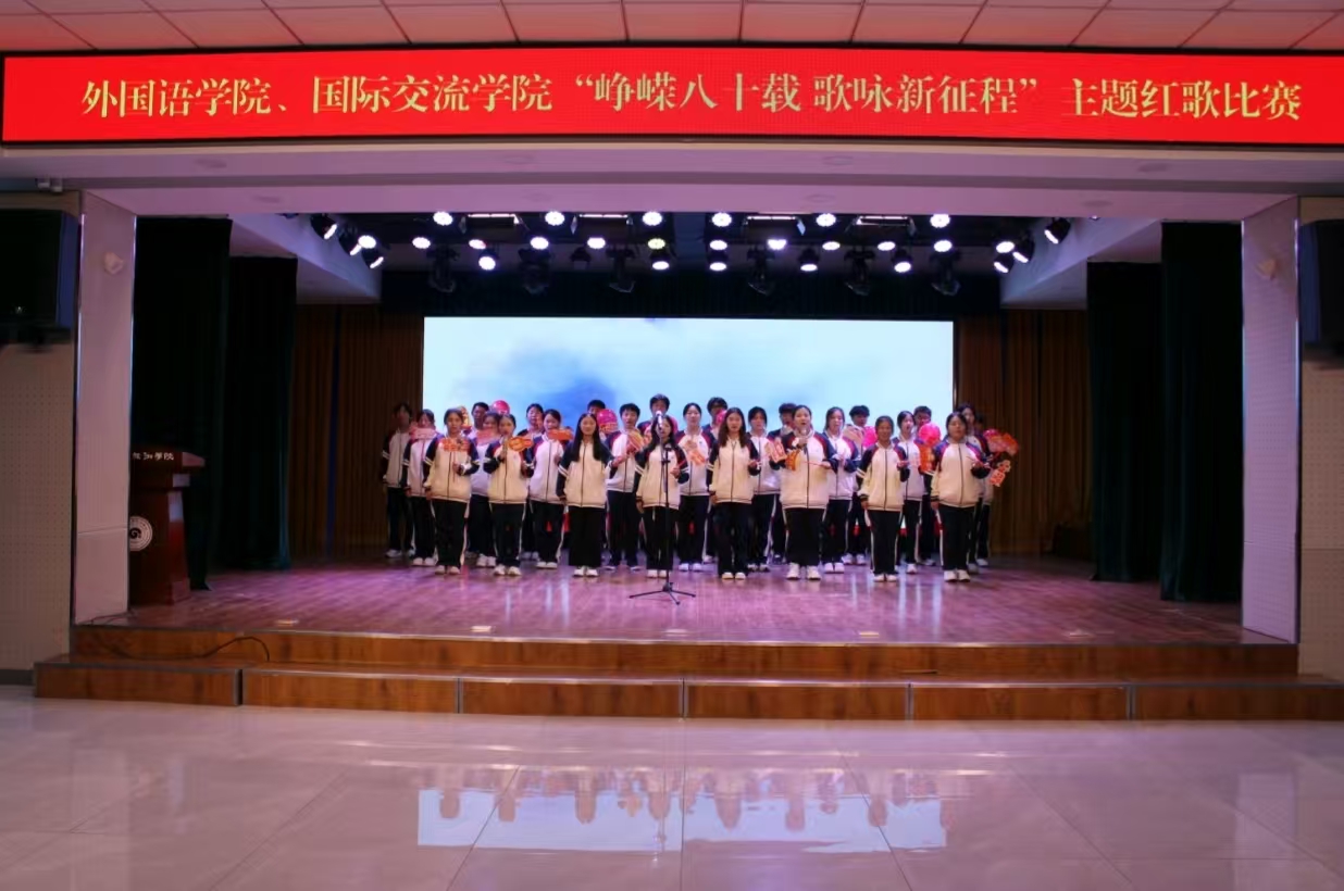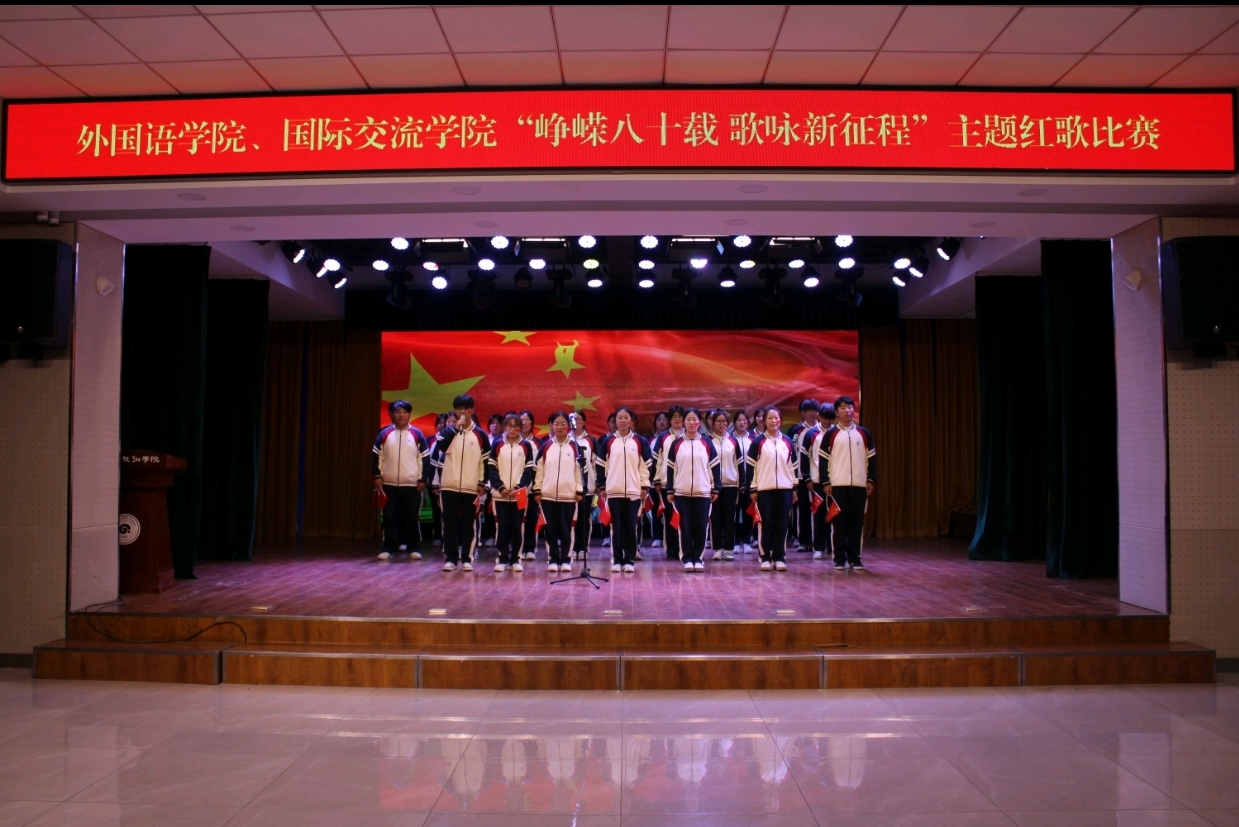 ▲外国语学院、国际交流学院“峥嵘八十载,歌咏新征程”主题红歌比赛现场