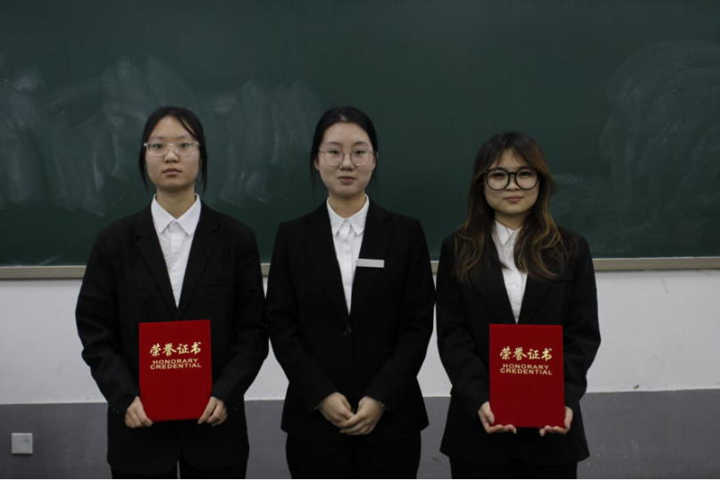 ▲学生会轮值主席房跃为“二等奖”队伍颁发荣誉证书
